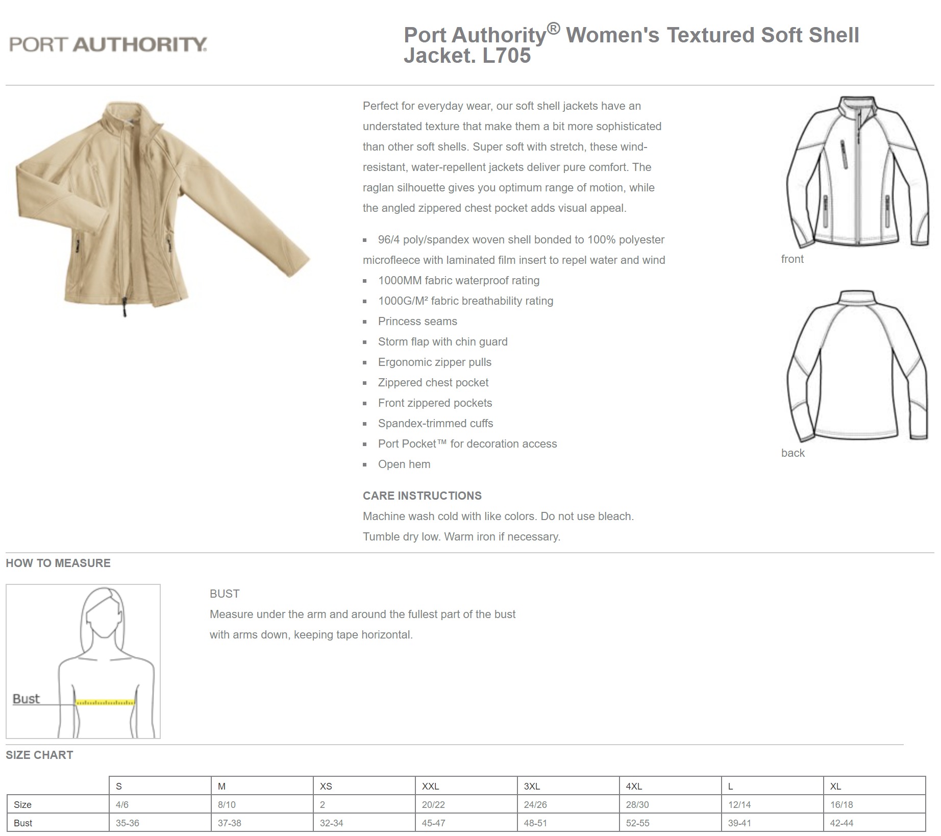 - 96/4 poly/spandex woven shell bonded to 100% polyester microfleece with laminated film insert to repel water and wind